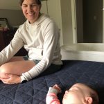 Up and down and up and down. What a fun month! Mia is interactive a whole bunch more with smiles and coos, we focused the heck out of tummy time, she’s noticing the world around her, and while still have trouble getting to sleep a lot of nights, is sleeping 10-12 hours straight. She also spent some time in the pool and looooves bath time, especially when her Otteroo is involved. Yes, she also has family and friend flashcards so she can learn faces of those she can’t meet.